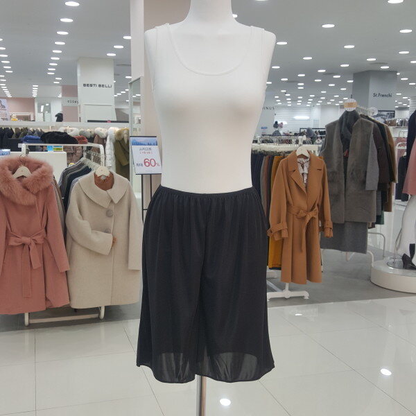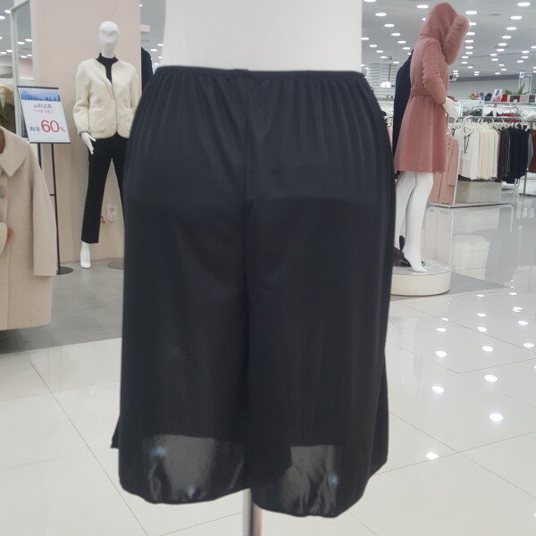 슬립원단의실키한감촉의5부긴속바지예요.블랙컬러로어떤옷속에입어도좋고롱스커트나여름철잠옷대용으로도좋아요.