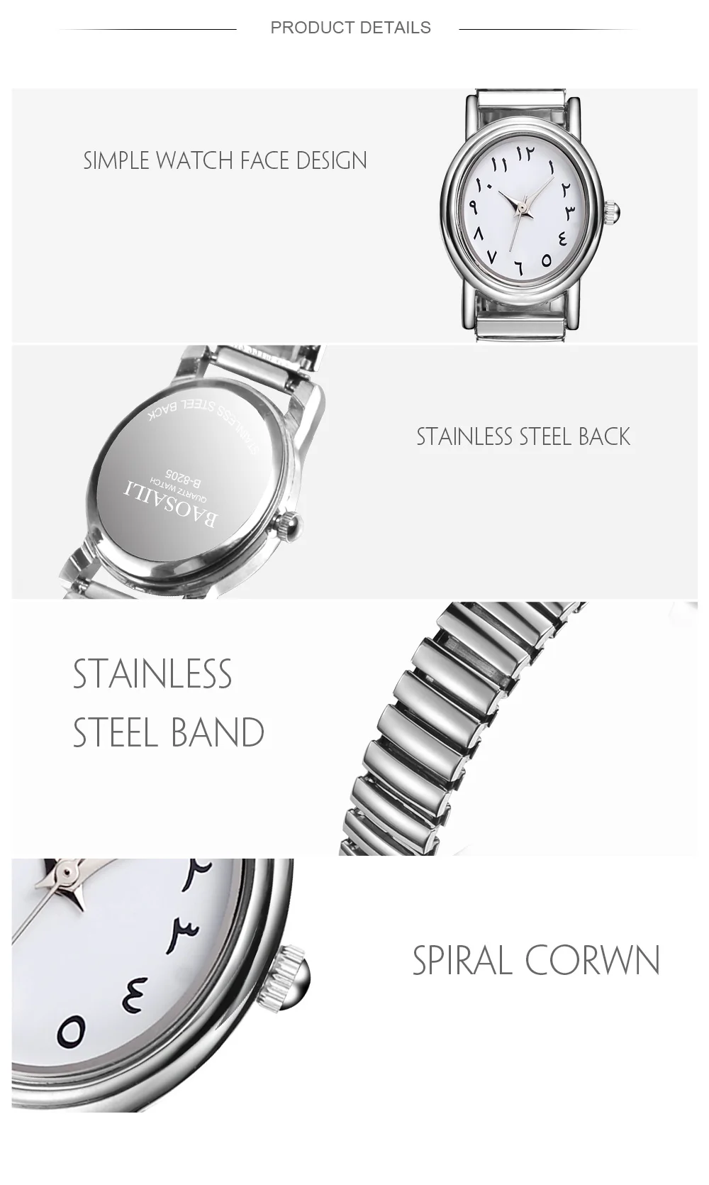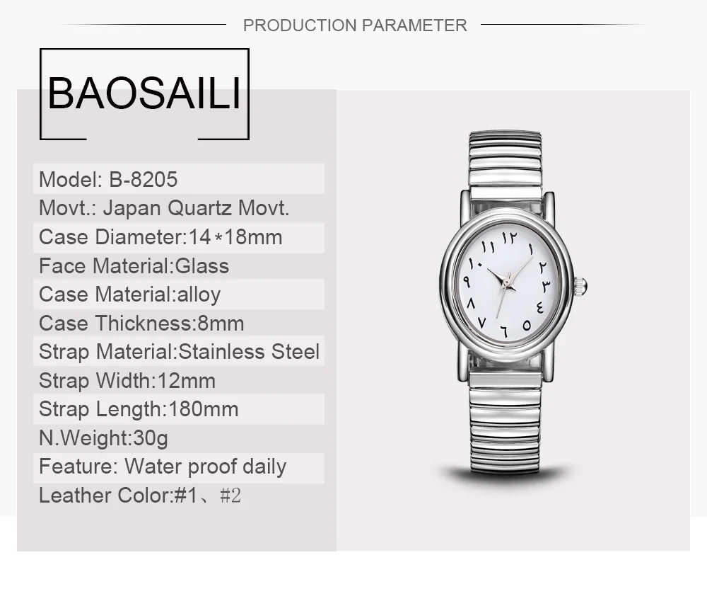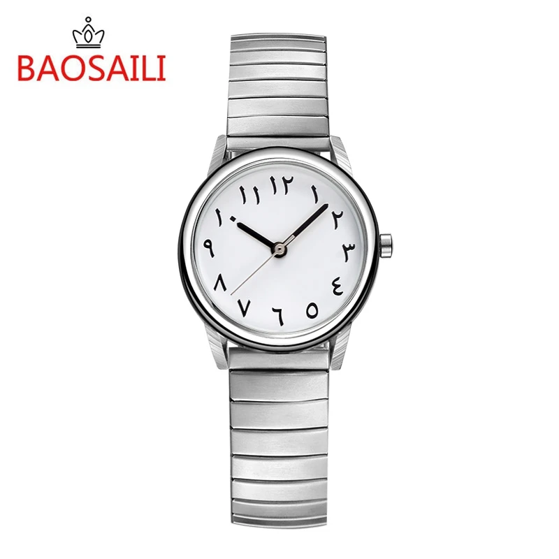 | [해외] BAOSAILI 전체 스테인레스 스틸 아랍 숫자 여성 팔찌 시계 작은 여성 시계 탄성 석영 손목 시계 다이얼 |