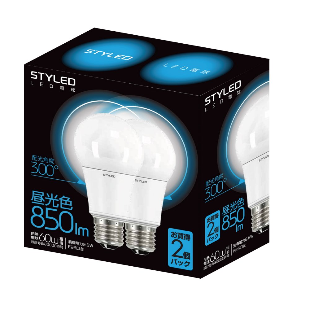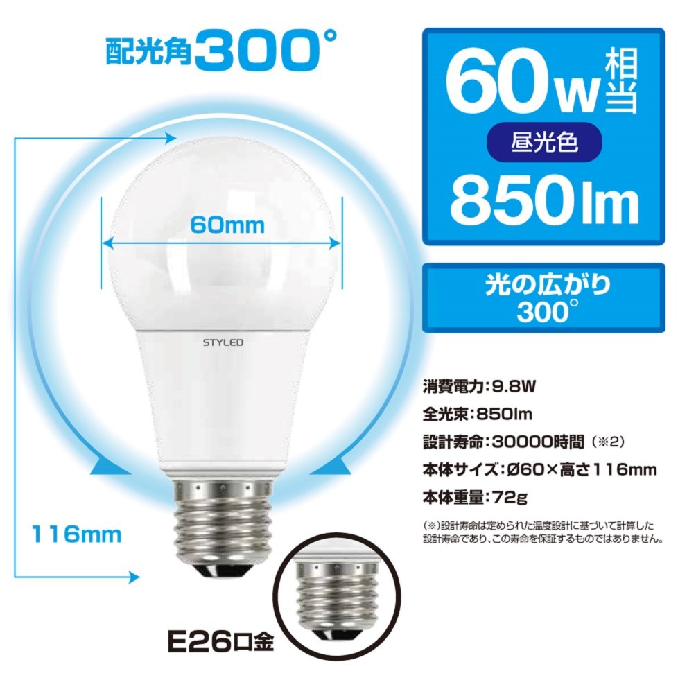 · Omnidirectional type approached to the spread of incandescent light bulb (light distribution angle of 300 degrees)