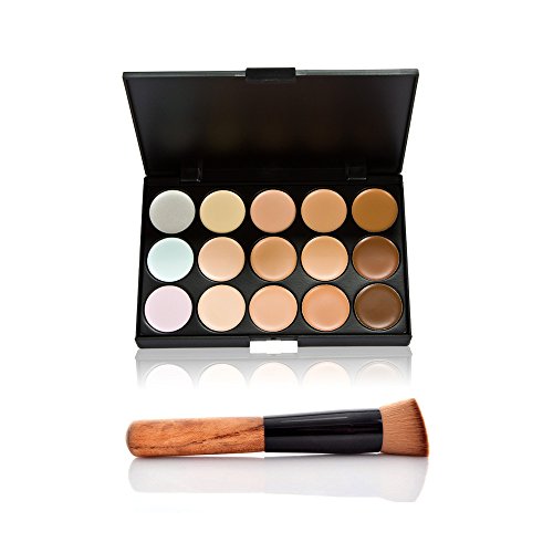 AMarkUp 15 Colors Concealer Makeup Cream Care Camouflage Contour Palette + Sponge Puff + Oblique Head Foundation Brush (Type1+Brush Puff)