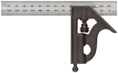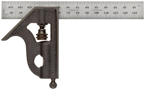 Starrett C11MH-150 Cast Iron Square Head With Satin Chrome Blade Combination Square, Black Wrinkle Finish, 150mm Size