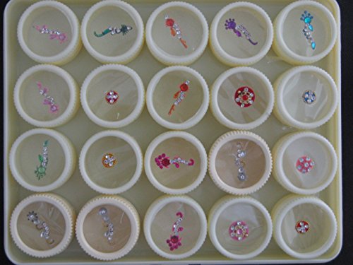 Bindi Box Long Multicolored Crystal Bindis Bridal face Jewels Forehead Tika (Pack of 40 Bindis)