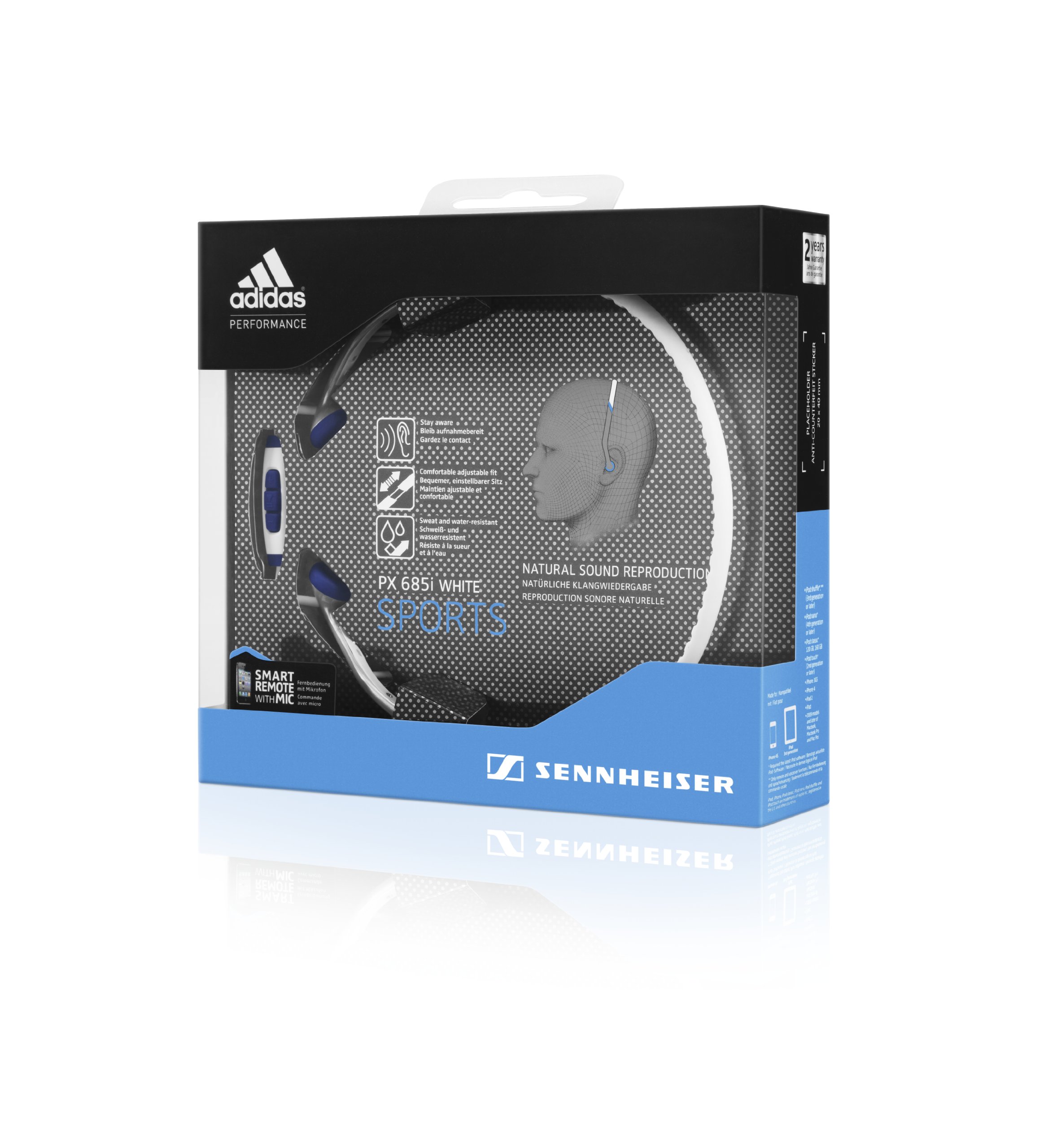 The Sennheiser logo is placed in the middle part on the left side of the headband, the brand logo of Adidas is placed on the right skin,