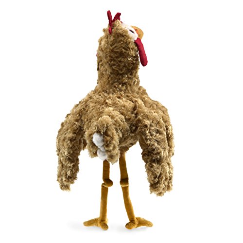 Feathers are flying with the Folkmanis funky Chicken puppet. Guaranteed to be first in the pecking order, this chicken puppet is crazy-fun. Its movable beak and two-handed wing design allow for endless combinations of clucking, strutting, scratching and flapping. This chicken puppet stands 22 inches tall, is recommended for ages 3 and up. Ideal for use in interactive stage and puppet theater, Folkmanis Puppets are also great for teaching, daycare, school, pretend play, games and parties, or to pair with a book for storytelling. Easy to feed and care for, just add lots of love and snuggly fun. Folkmanis has been encouraging young imaginations to blossom since 1976 with its innovative and engaging specialty puppets, promoting creativity and discovery while winning nearly every industry, child development, and kid-tested award. Folkmanis has grown to become the premier manufacturer of plush puppets worldwide, offering over 200 of the most heartwarming and realistically designed creatures--both exotic and familiar--on the market today. (Birthday: January, 2010).Feature