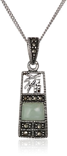 Sterling silver rectangular pendant with Jade and Marcasite .