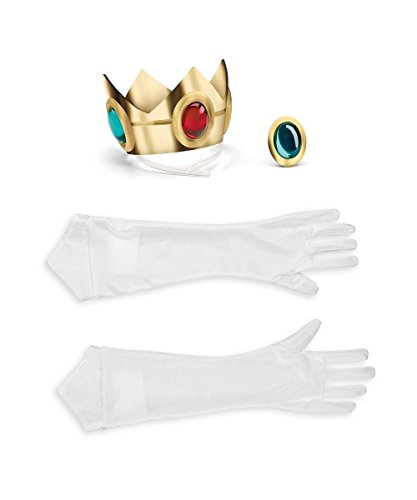 -. Binding : Kitchen -. Brand : Disguise -. ClothingSize : Onesize -. Color : Multicolor -. Department : Womens -. Feature : Includes one pair of gloves, crown with headband and stick?on amulet. / Costume is not included. / One size / Available in one size fits most . / Includes one pair of gloves, crown with headband and stick-on amulet. -. ProductGroup : Home -. ProductTypeName : HOME -. Size : Onesize -. Title : Princess Peach Accessory Kit Costume Accessory Set -. UPC : 799491303157