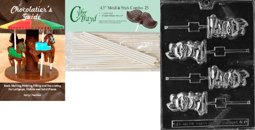 Cybrtrayd 45St25Bk-E400 'Bunny with Carrot Lolly' Easter Chocolate Candy Mold with 25 4.5-Inch Lollipop Sticks and Chocolatier's Guide
