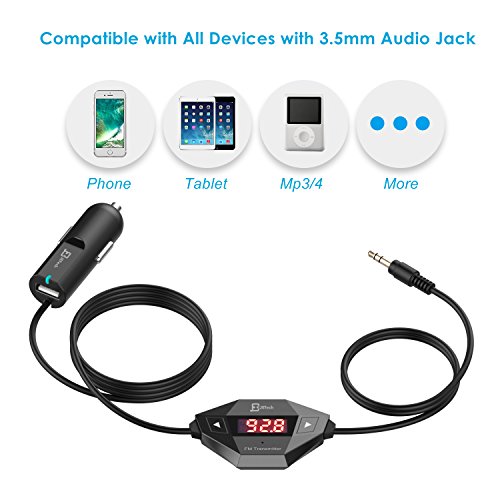 JETech Wireless FM Transmitter Radio Car Kit for Smart Phones bundle with 3.5mm Audio Plug and Car Charger