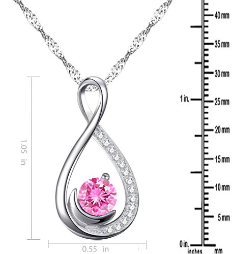 ♥STAND OUT IN STYLE♥ This pendant features an infinity symbol-shaped frame, half moon design, accented with shimmering diamond accents. A sparkle 6mm pink tourmaline swarovski topaz stone setting in center of the Infinity symbol. The exquisite silver color and the unique design of hearts necklace make it a an elegant addition to the jewelry collection of any woman, who wants to stand out with her own, unique, luxurious style!