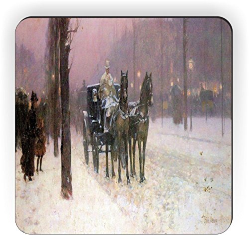 Rikki Knight Childe Hassam Art Street Scene with Two Cabs Design Square Fridge Magnet