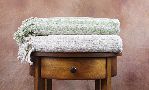 Amrapur 5CTNTRWH-IVL-ST Ivory/Lime Hounds Tooth 100% Cotton Throws (2 Pack), Standard