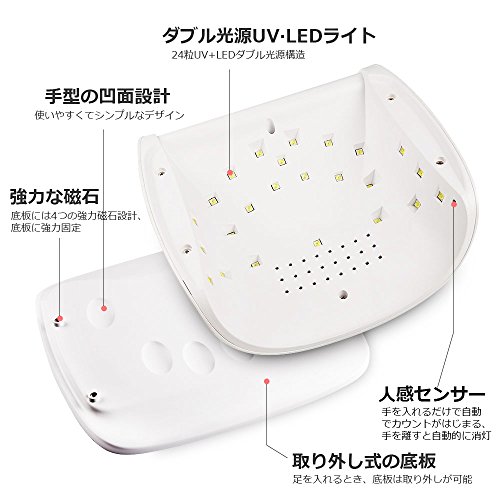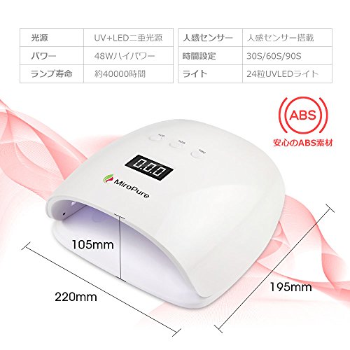 원본상품명: MiroPure 48W UV LED ネイルドライヤ 人感センサ 自動オンオフ 30S/60S/90Sタイマ設定 取り外し式 手と足用 24粒UV LDEダブルライト 【24月保期間】