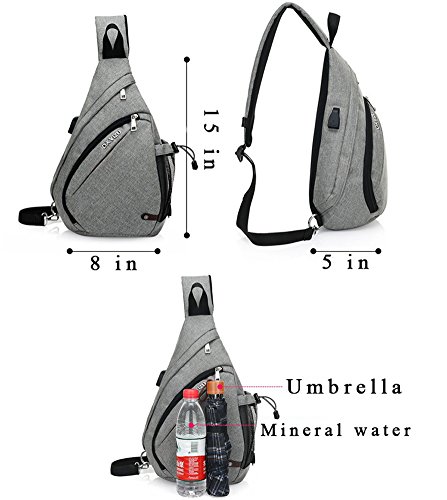 Size:15 inches(H) * 8 inches(L) * 5 inches(W).The sling bag is very convenient when you go walking, hiking, amusement park, traveling. You can put your necessary things like phones, camera, tablets, keys, snacks, etc. It is a mini bag just for your necessities.