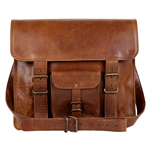-. Feature : HIGH QUALITY: 100% Genuine Leather, We use Olive green heavy duty canvas for all our bags. / DURABLE: Sturdy top handle and adjustable shoulder strap. Easy and comfortable to carry. SIZE: 15" width x 11" height x 5" depth / LOTS OF ROOM: Big front pocket (15x12x2 inch) and 1 front pocket for cash, mobile etc, 2 small inner compartments and 1 big inner compartment, 1 inner zipper compartment and 1 back snap button compartment for convenience / Has an adjustable strap with shoulder pad for comfortable carry. Naturally treated, strong but supple goat leather and sturdy canvas lining on this inside. / This sleek and spacious shoulder bag can also be used as a: Leather messenger bag for men, laptop leather bag, messenger bag for women, college bag, meeting bag, gift idea, birthday present, christmas present, vintage leather bag, quality bag, unisex bag, real leather bag, brown leather bag, medium bag.