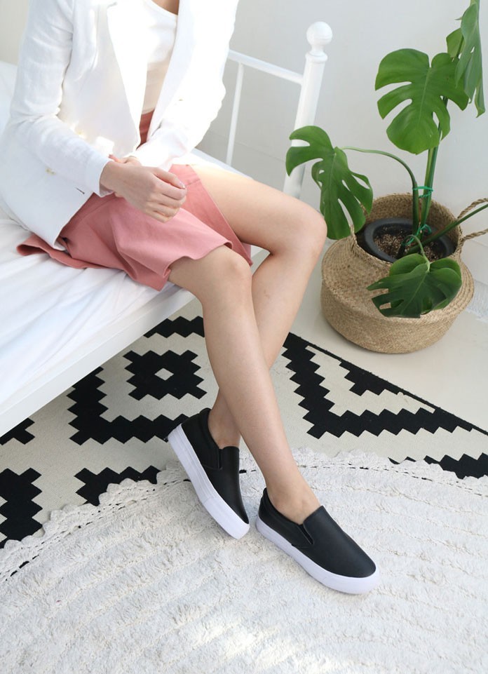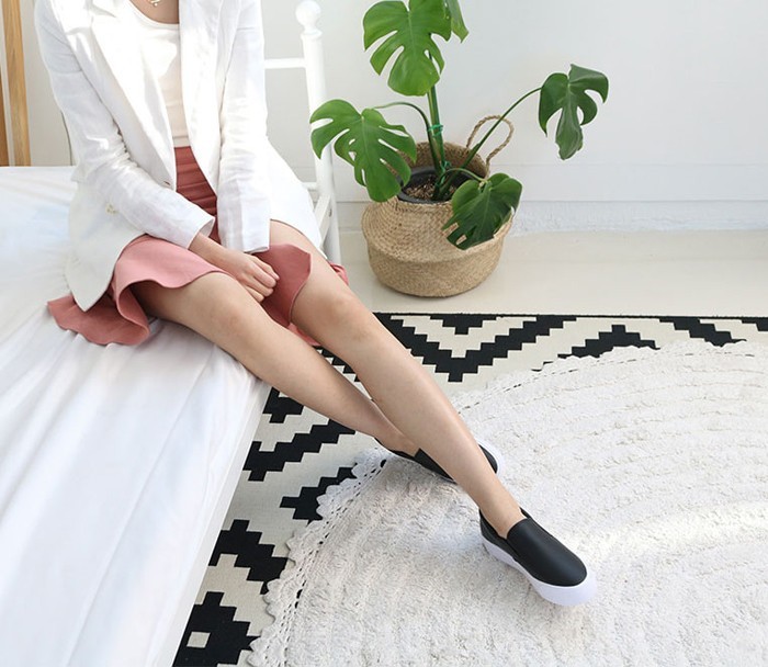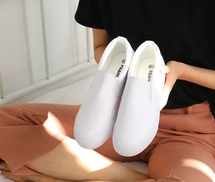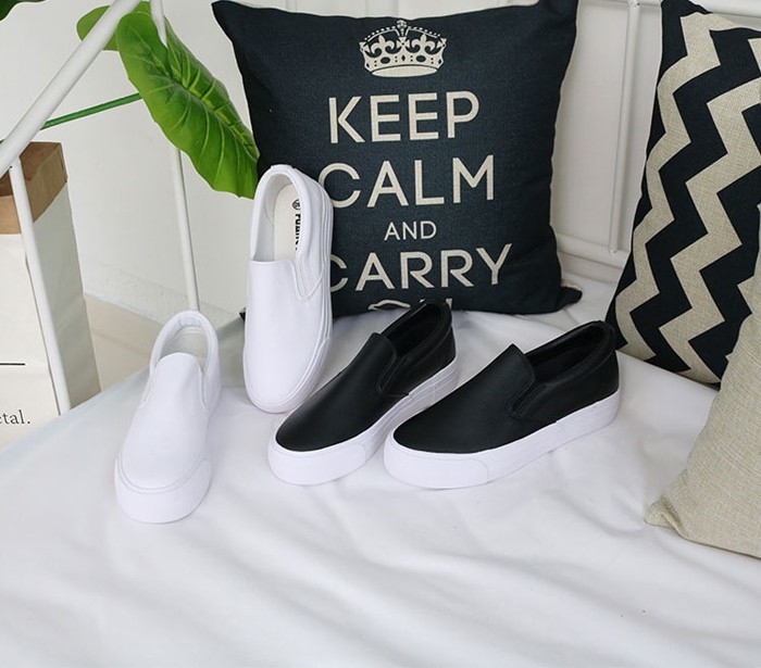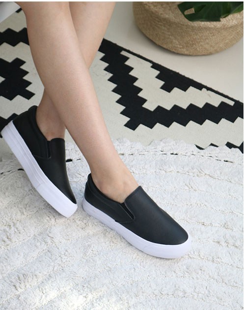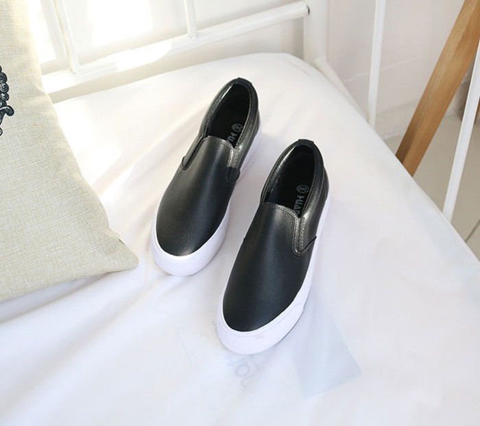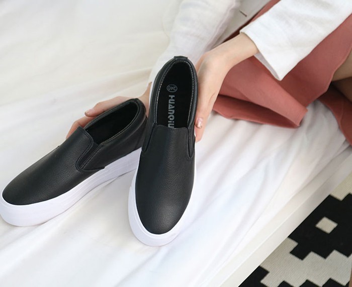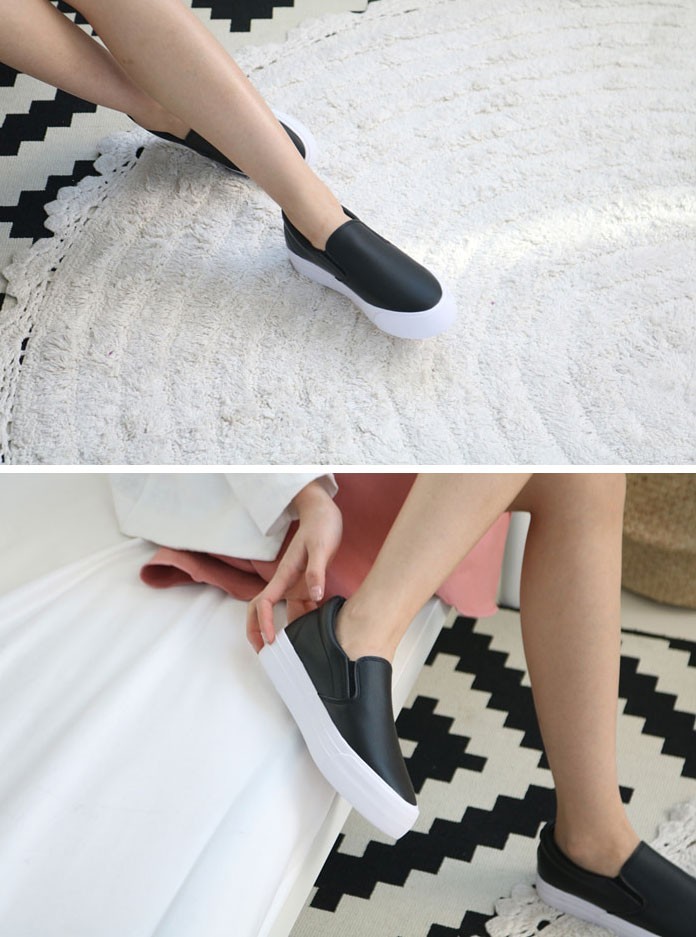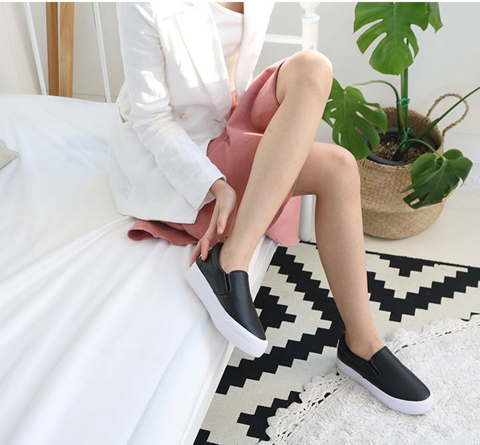 商品名:スリッポン レディース 厚底 シンプル 本革 レザー 2018 夏 ファッション 靴 婦人靴