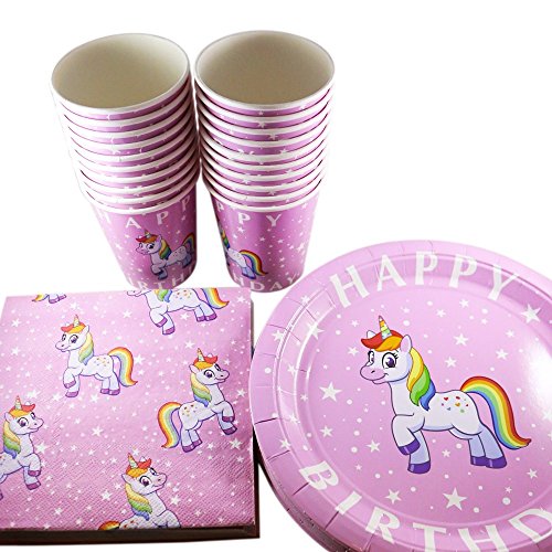-. Binding : Toy -. Brand : OnlinePartySupply.com -. Color : Pink -. EAN : 0764072998770 -. Feature : CUTE RAINBOW UNICORN THEME - Give someone special in your life the perfect birthday! / NO SAGGING or DROOPING - Made from a double layer of premium paper, these plates and cups won't sag or buckle when wet / (20) RAINBOW UNICORN PLATES / (20) RAINBOW UNICORN CUPS / (20) RAINBOW UNICORN NAPKINS -. Label : OnlinePartySupply.com -. Manufacturer : OnlinePartySupply.com -. MPN : U1 -. PartNumber : U1 -. ProductGroup : Toy -. ProductTypeName : TOYS_AND_GAMES -. Publisher : OnlinePartySupply.com -. Studio : OnlinePartySupply.com -. Title : Cute Rainbow Unicorn Party Supplies - Throw the Perfect Birthday Party - Premium Dual Layer Paper Won't Sag or Buckle - Serves 20 (60 Total Pieces) -. UPC : 764072998770