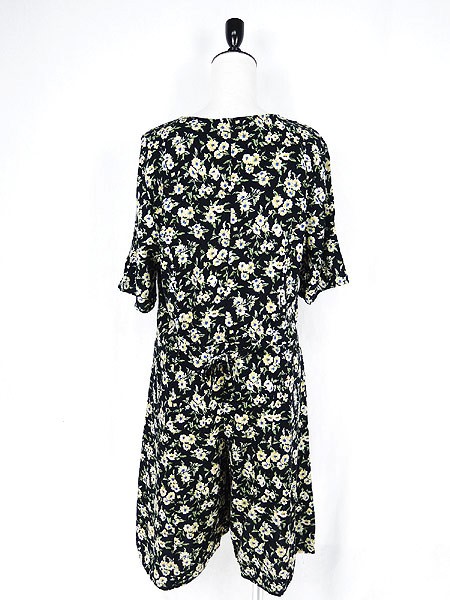 Ladies ブランド- カラー黒ベース メール便不可 コンディション★★★ 素材レーヨン 表記サイズM スタッフコメント前立部分、一部に糸引きあり。 実寸サイズ 着丈 95 cm 身幅 46 cm 肩幅 38 cm 袖丈 27 cm ウエスト 32 インチ( 82 cm) レングス(股下) 8 インチ(21 cm) 股上 60 cm (胸当て上から股まで) 太もも幅 33 cm 裾幅 39 cm ※ウエスト・ヒップ以外は平置き採寸