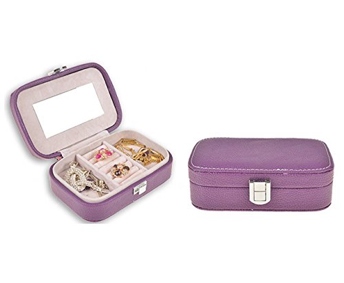 Jewelry Box Small Travel Jewelry Case Organizer with Mirror for Rings Earrings Necklace By Wonlives (purple)