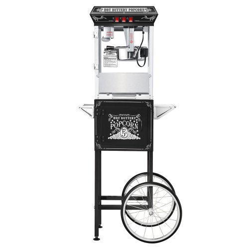 -. Brand : Great Northern Popcorn Company -. Color : Black -. EAN : 0610708144182 -. Feature : Deluxe model with 3 control switches and 850 watts / Popcorn supply storage in base / 8 Ounce Kettle makes roughly 3 gallons of popcorn per batch / 18" Ball bearing wheels for smooth mobility / Tempered Safety Glass Walls and Doors. -. Label : Great Northern Popcorn Company -. Manufacturer : Great Northern Popcorn Company -. MPN : 5810 Good Time Black Full 8 -. PackageQuantity : 1 -. PartNumber : 5810 Good Time Black Full 8 -. ProductGroup : Kitchen -. ProductTypeName : KITCHEN -. Publisher : Great Northern Popcorn Company -. Studio : Great Northern Popcorn Company -. Title : Great Northern Black Good Time 8oz Full Popcorn Popper Machine w/ Cart, 8 Ounce -. UPC : 610708144182 -. Warranty : 5 Years Machine / 30 Day on Kettles and light bulbs