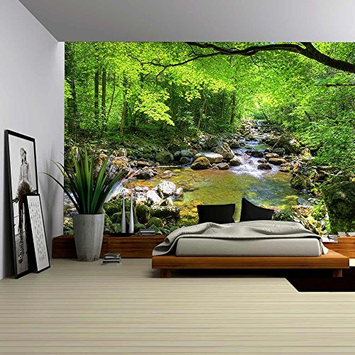 wall26 - Fall Forest Stream Smolny in Russian Primorye Reserve - Removable Wall Mural | Self-adhesive Large Wallpaper - 100x144 inches