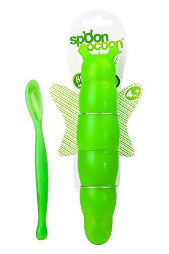-. Feature : Cute, caterpillar-shaped travel case conveniently stores baby's feeding spoon for on-the-go meals / Bright color & unique shape makes it easy to find in diaper bag or handbag / Feeding spoon included, and fits most other baby spoons / Once baby outgrows infant spoon, Spoon Cocoon works as toddler toothbrush holder, too! / BPA free; PVC & phthalate free, made from recyclable plastic. Makes a great registry gift!