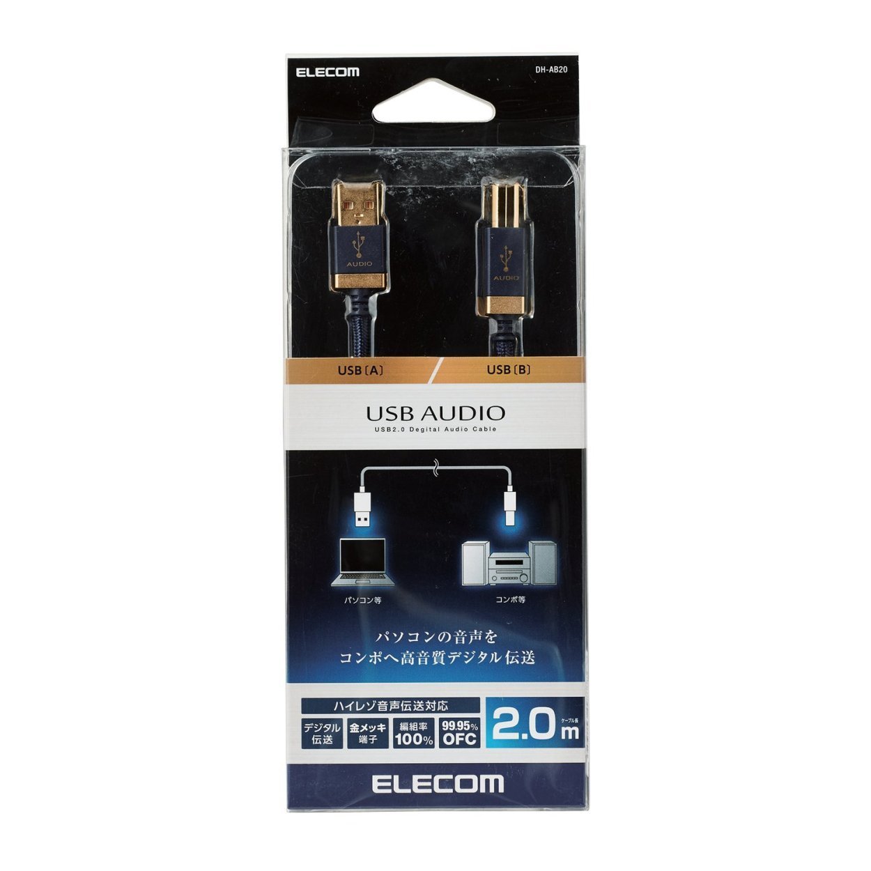 ■ It is a USB AUDIO cable that connects a personal computer with a USB Standard A connector and an audio device compatible with USB Standard B audio input, and can transmit high-quality digital signals.