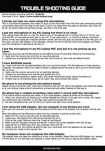-. Feature : Some reports indicated that this microphone does not work with iphone, ipad or any apple product. If you want one that also does work with apple products, please buy the non-FBA from other sellers, also ZaxSound. / Good Design, Perfect Grep Plug and Play Condenser Microphone with 3.5mm Stereo Audio Jack Plug, No Software is Needed. / Ability to Connect to your Android Mobile or Tablet, xBox 360 and almost all devices with Plug and Play Functionality. / External Microphone for Windows 10 / 8.1 /8 / 7 and Mac PC Computers, Laptops Providing Clear Digital Stereo Sound. / Use Your Smart Phone to Record Your YouTube Videos From 10 Feet Far in a Quite Room. Comes with a Tripod Stand Allows you to Adjust the Angle of the Microphone.