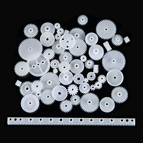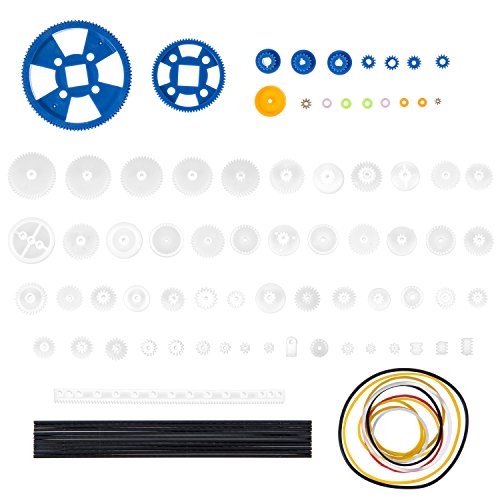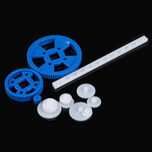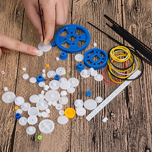 Bememo 80 Pieces Plastic Motor Gears DIY Toys Gear Set and 10 Pieces Stainless Steel Shafts Rod Kit for DIY Car Robot