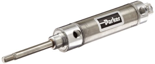 Parker 1.06DPSR02.0 Stainless Steel Air Cylinder, Round Body, Double Acting, Pivot & Nose Mount w/ Pivot Pin, Non-cushioned, 1-1/16 inches Bore, 2 inches Stroke, 5/16 inches Rod OD, 1/8" NPT Port