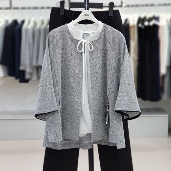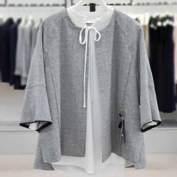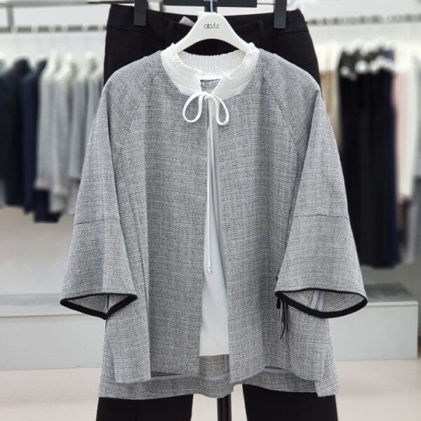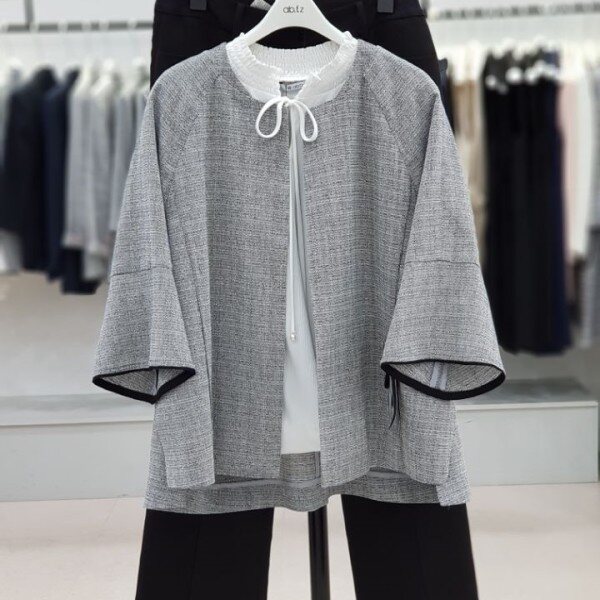 라운드 네크라인에 단정하고 깔끔한 분위기의 자켓입니다.홑겹이라 가볍고 사이즈 구애 없으셔서 보다 편안하게 한 여름까지 착용가능한 상품입니다.
