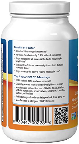 -. Feature : The Gold Standard in premium 7-Keto® DHEA supplement / Features clinically validated 7-Keto® ingredient / Thermogenic, Safe, Natural, and Non-stimulant / 100 mg per vegetarian capsule / 120 vegetarian capsules per bottle / Key Health Benefits: Supports enhanced metabolism, healthy body weight & BMI*