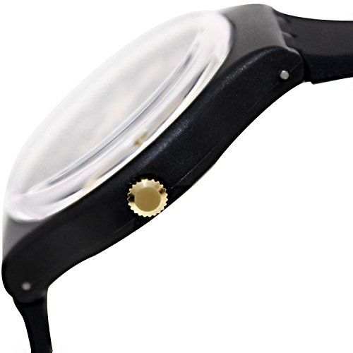 -. Title : Swatch GB274 Golden Tac Black Gold Analog Dial Silicone Strap Unisex Watch NEW