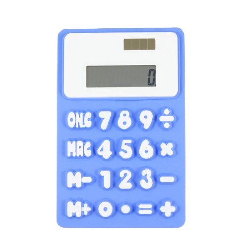 -. Feature : Product Name : Calculator;Material : Silicone / Battery : 1 x AG10 Battery(Not Included);Color : Blue , White / Size : 15.5 x 9.5cm/6.1" x 3.7"(L*W) / Weight : 68g / Package Content : 1 x Calculator