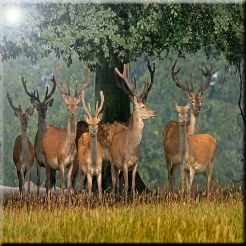 Rikki Knight RK-6intilec-8991 6" X 6" Grouped of Red Deer's in Yorkshire Design Ceramic Art Tile