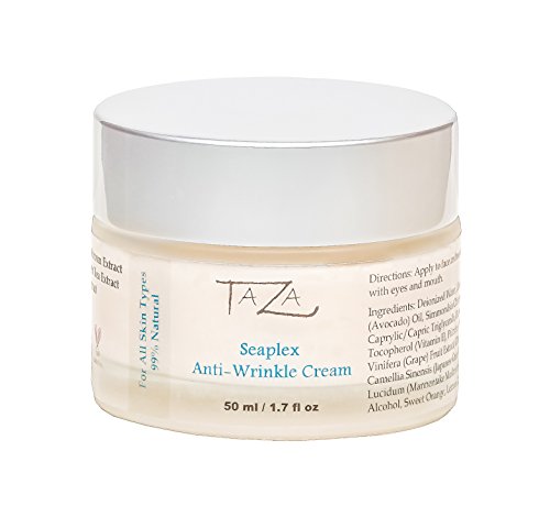 Taza Natural Seaplex Anti-Aging Cream contains: Jojoba Oil, Avocado Oil, Grapeseed Oil, Shea Butter, Vitamin E, Grapeseed Extract, Wild Mushroom Extract, Japanese Green Tea Extract, and Cucumber Extract.