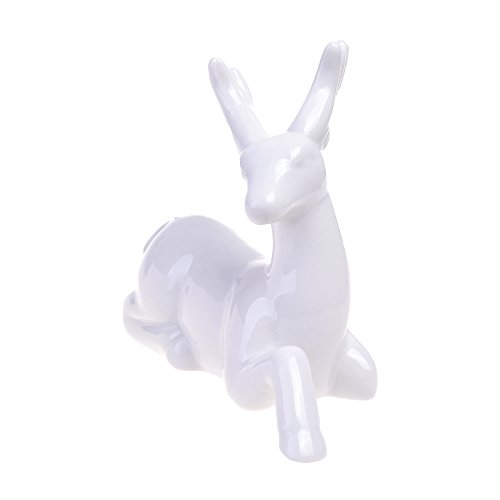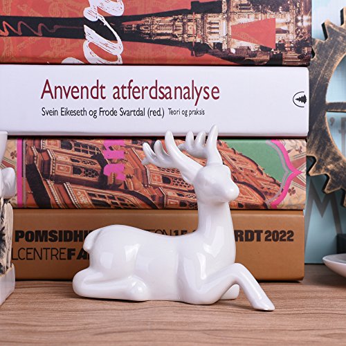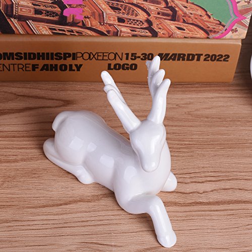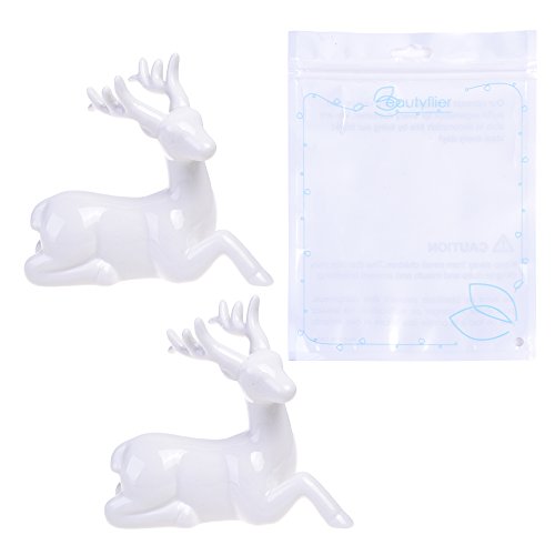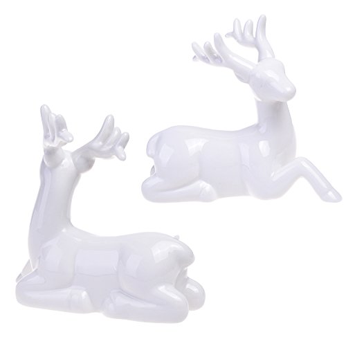 Kloud City Pack of 2 Ceramics Small Size Christmas White Colored Deer Statue Desktop Figurine for Home Decorations