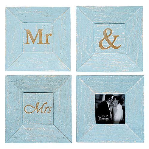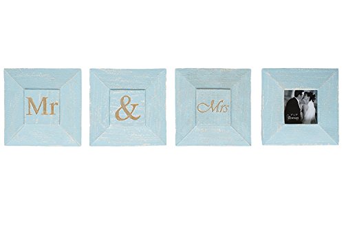 Mr & Mrs Turquoise Blue Wall Art Sign Plaques with 3 x 3 Picture Frame, Set of 4