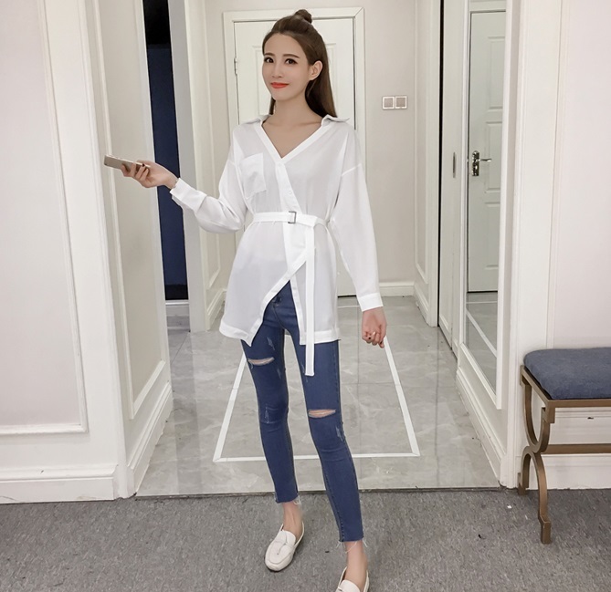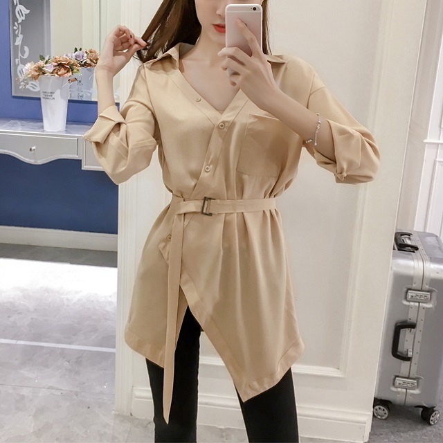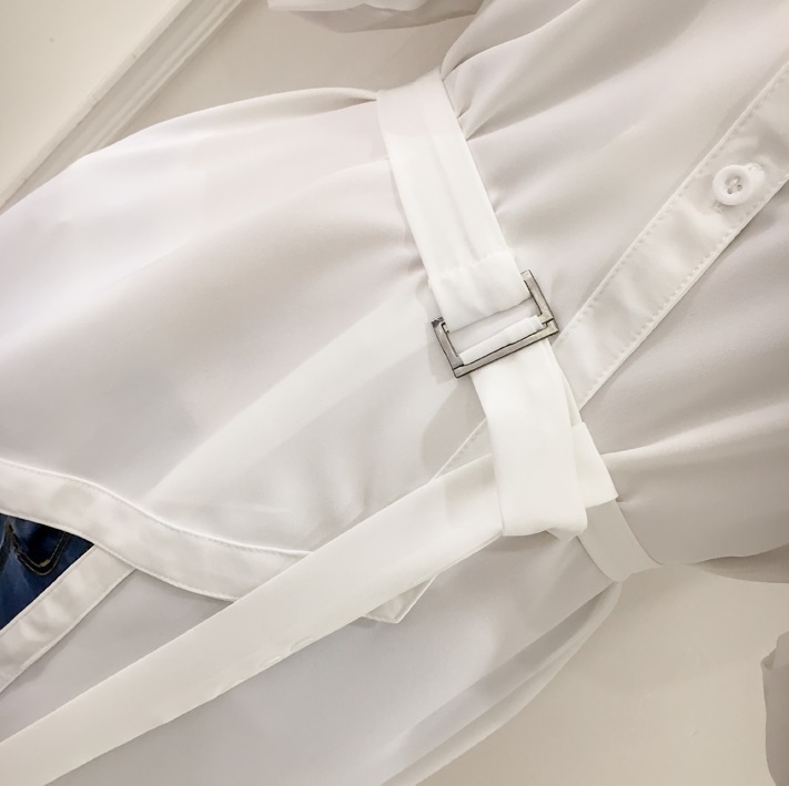 ワイドな開きのVネックで顔周りはスッキリと、ウエストベルトでメリハリの着こなしが叶うオススメのアイテムです。