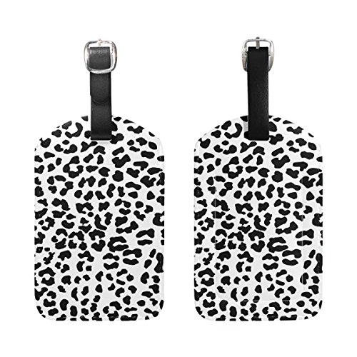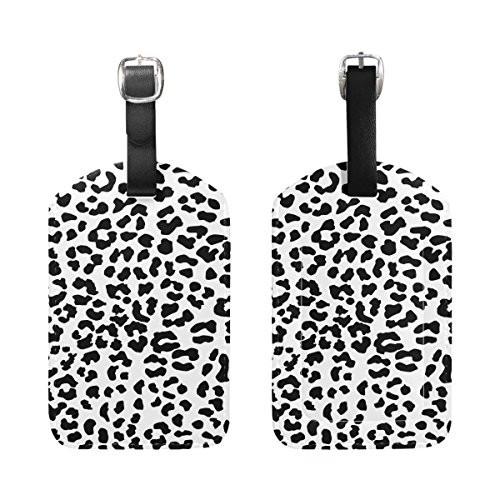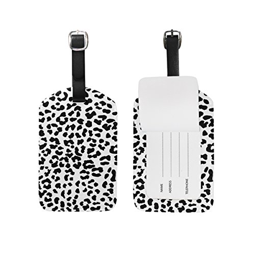 LORVIES Black And White Leopard Pattern Luggage Tags Travel Labels Tag Name Card Holder for Bag...
