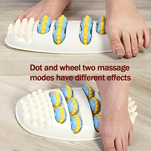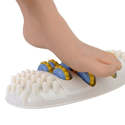 Studio : SOULE Publisher : SOULE Binding : Health and Beauty Product Description Feet Massager Treatment Your feet are tired yet you don't want to do complicated, faraway therapies? Here's your salvation: Fit Feet Massager ! This massager increases blood flow to your feet to relieve plantar fasciitis, muscle or ligament pain, and more! Equipped with spiky, acupressure and reflexology rollers tool, they'll give pain relief as you sit comfortably at home. No expensive, long-winded appointment necessary! Benefits: 1. Promote blood circulation and metabolism, improve your sleep quality. Your brain can get sufficient oxygen, make you refreshed and clear mind. 2. Can improve hypertension, rheumatic pain, waist sour backache. 3. Can gradually improve the foot problem. 4. Help with the knee inflammation, arthritis and joint pain. 5. Relieve edema, varicose veins leg and paralysis of the legs. 6. Keep using on a regular basis, can more effective improve insomnia, strengthen the function of the digestive system. Notes: 1. Please DO NOT stand directly on the wood foot massager. You should sit down in a chair, put your feet tread rolling back and forth on the massager! 2. Within half an hour after the meal, Please DO NOT do foot massage. 3. Advisable massage time is 15 to 25 minutes and once a day. Drinking a glass of water after the massage is better for your health. Package Include: 1 x WELOU Foot Massager 0