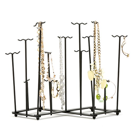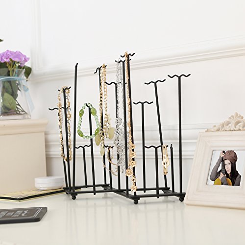 MyGift Expandable Jewelry Tower, Adjustable Necklace & Bracelet Organizer, Black