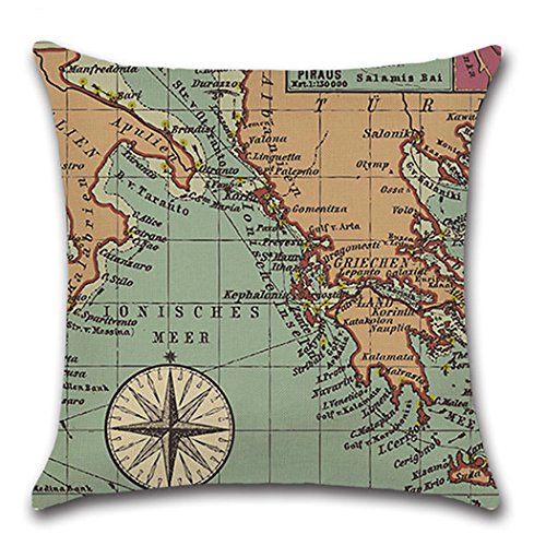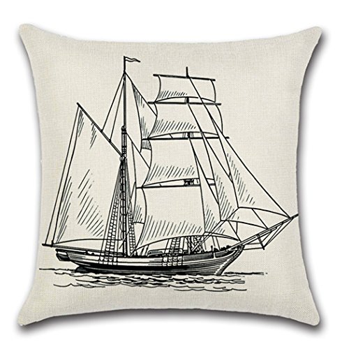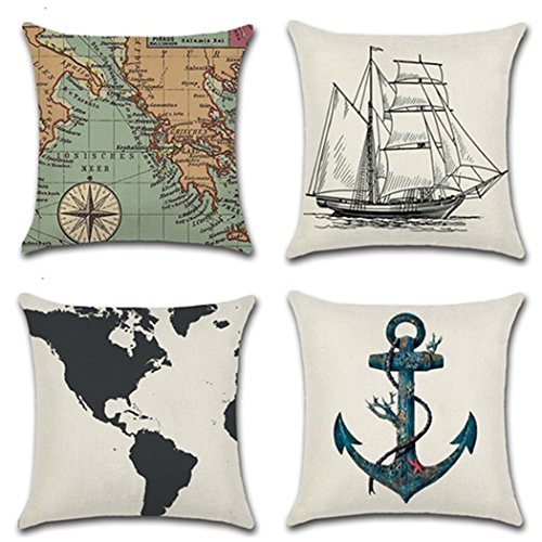 Square Cotton Pillowcase Decorative Throw Cushion Cover Voyage for Sofa Chair Set of 4