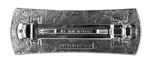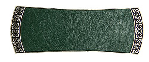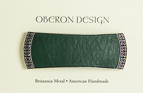 100% Britannia metal and celtic design with leather insert make this barrette one of a kind. Whether you wear it to sweep back one side, in a ponytail or to secure a messy twist, compliments will abound!. With a style that only fine, handcrafted accessories can achieve, this French clip barrette is the perfect fit for all your favorite looks. Pull fine, thin hair into a classic low pony for a look that goes from the office to an evening out with ease. Curly, thick locks are gracefully tamed with a well-placed barrette, and formal pin-up styles are held securely (and beautifully) in place. You'll discover that the Oberon Celtic Leather clip is so versatile you'll reach for it again and again. Because it's hand crafted in the US from the finest 100% Britannia metal, each clip is a unique work of art you'll love to show off, and it makes a timeless gift as well. - 1.2 ounces