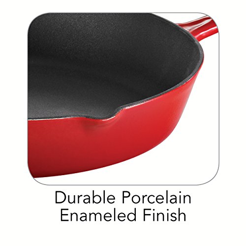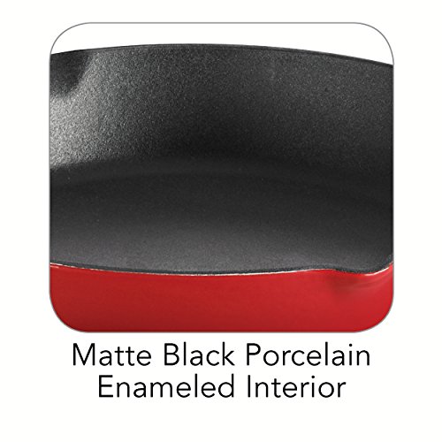The enameled cast-iron 12-inch skillet is part of Tramontina's Gourmet collection of premium products engineered and manufactured with the finest design, materials and workmanship, outperforming similar products within the market and delivering the best quality and value to the cooking professional and enthusiast alike. Prized by cooks for superior heat distribution and retention this enameled cast-iron 10-inch skillet provides outstanding cooking results and comes in a vibrant, gradated porcelain enamel exterior finish offering an elegant kitchen to table serving option. Equipped with a convenient helper handle for secure lifting and transferring from stovetop to tabletop and two pouring lips, this pan will soon become a staple in your kitchen for recipes that include frying, searing or browning. Plus, the lid from the Tramontina Gourmet enameled cast iron 4 Qt covered braiser from the same family fits the 12-inch skillet perfectly! The skillet has a matte black porcelain enamel cooking surface that is easy-to-clean and PFOA- and PTFE-free. Hand-wash only, compatible with all cooktops and oven-safe to 450 F. This product is assembled and packaged in USA and offered under a lifetime warranty.Feature