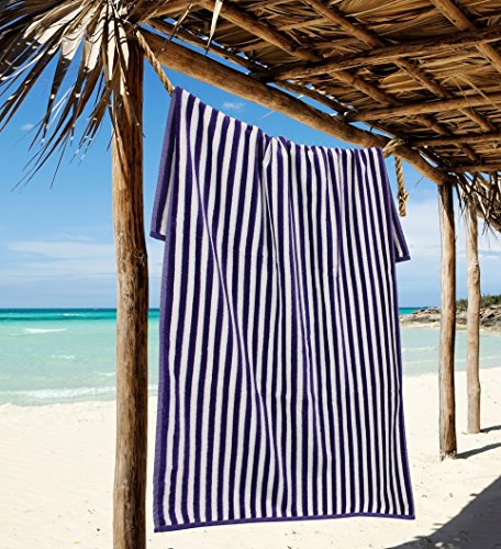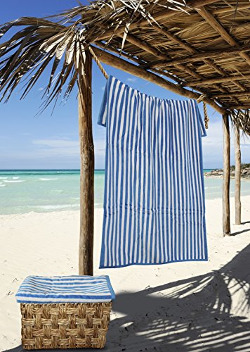 North Point Sleep Master Jacquard Velour Hotel Cabana Stripe Beach Towel, 30 by 60", Sky Blue