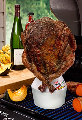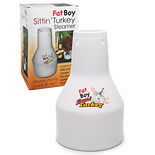 Make A Full Meal With The Fat Boy Sittin Turkey Steamer! Our Fat Boy Sittin Turkey is a favorite with everyone that loves crispy, moist and savory Turkey with a great extra benefit. Along with cooking the perfect Turkey, the Fat Boy gives the needed room that you need to cook your favorite side dish in the base! Stuffing, Vegetables, soup, chili and of course beer or BBQ sauce! Anything is possible with the Fat Boy. Start by putting whatever side you like in the base and liquid, season your bird (Cook's Choice All Purpose Seasoning or Gourmet Steak Seasoning), place a whole Turkey on the Fat Boy and place it on the grill, or in the oven at 250 to 400 degrees. Steam is created as the contents inside the Fat Boy heats up. The steam rises, carrying with it the flavor of your side and saturating every ounce of the Turkey from the inside out. The steam keeps the inside of the Turkey moist, while the surrounding heat creates a nice texture on the outside of the Turkey. When the Turkey is fully cooked internally at 165 degrees, you remove it from the Fat Boy, pour out your side dish and your ready to eat.Feature