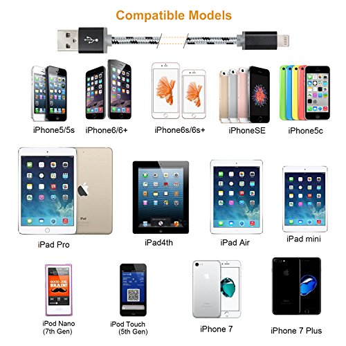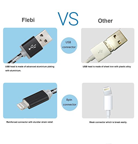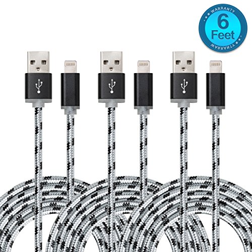 Flebi Apple Charger Lightning to USB Cable Nylon Braided Cord - 6 Feet ( 3 Pack )