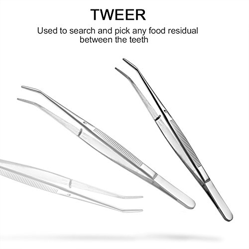 Multi functional- sickle scaler and hoe scaler aim to clean every aspects of all the teeth. Tweezers and probe concentrate on pick food residual between the teeth, while mouth mirror is helpful to observe every detail in your mouth.