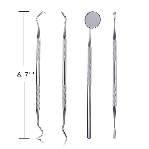 Package list: 1* Mouth Mirror, 1* Tweezers, 1* Tartar Scraper, 1* Dental Pick,1* Dental Scaler