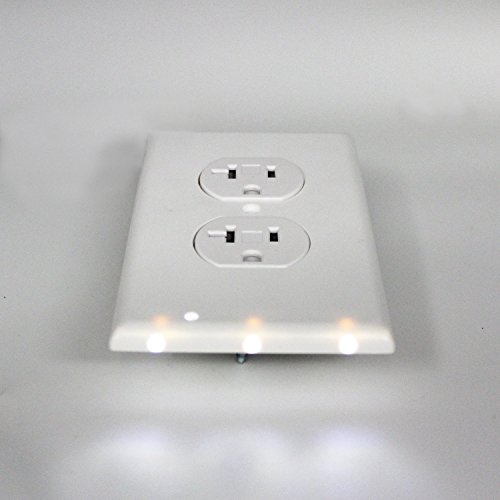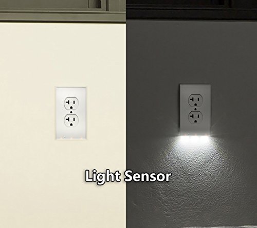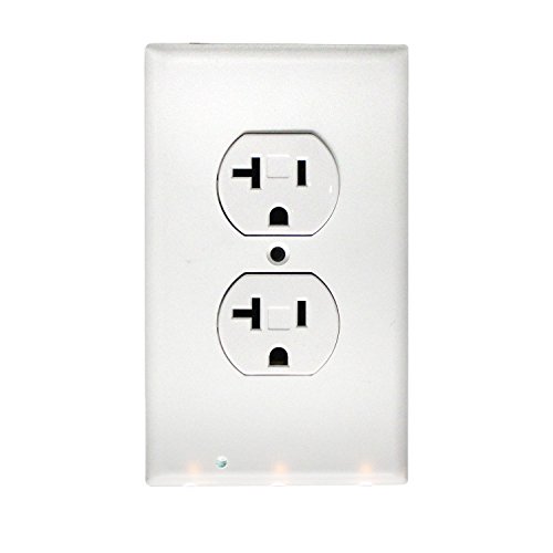 Night Light Wall Outlet - SECKATECH 20 AMP Wall Receptacle Coverplate with LED Night Lights, White